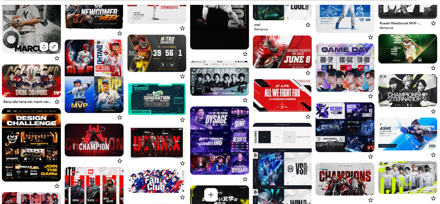 まず、eスポーツらしいデザインの特徴を把握するために、デザインを検索できるサービス「Pinterest」を使用してリサーチを行いました。